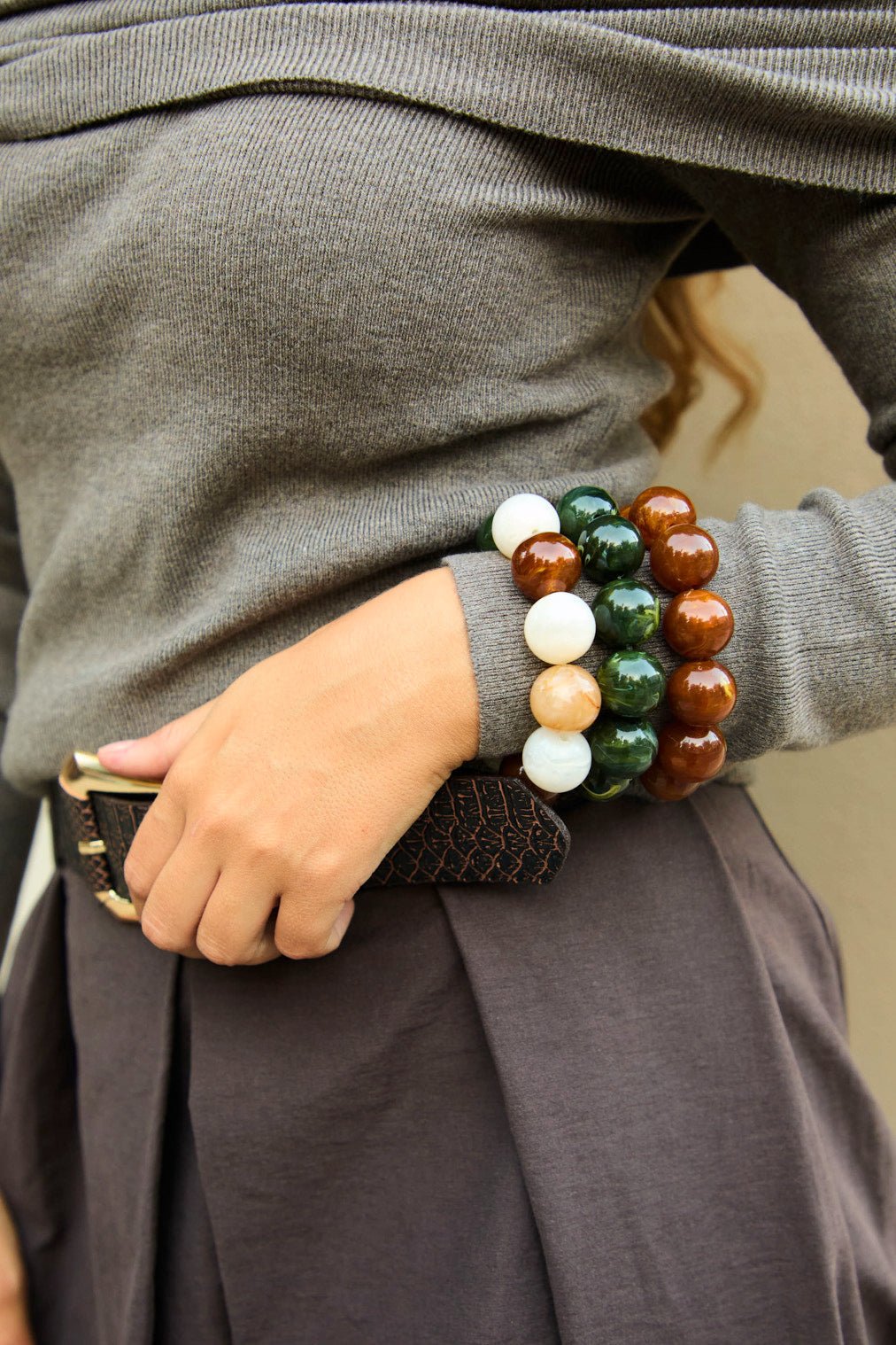 Pulsera elástica con bolas de resina.