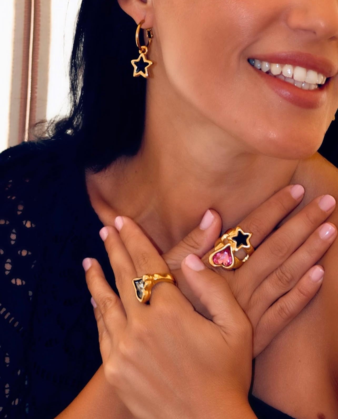 Cristales Swarovski que capturan la luz y elevan cada diseño, con el sello audaz de La Mala & La Fea.
