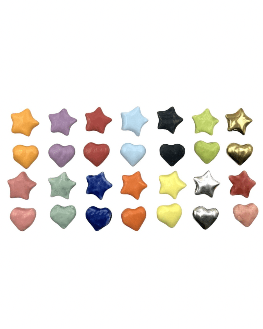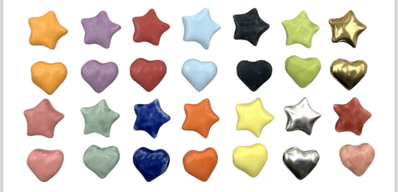 Diseño “click and play” en cerámica artesanal, disponible en formas de corazón o estrella.