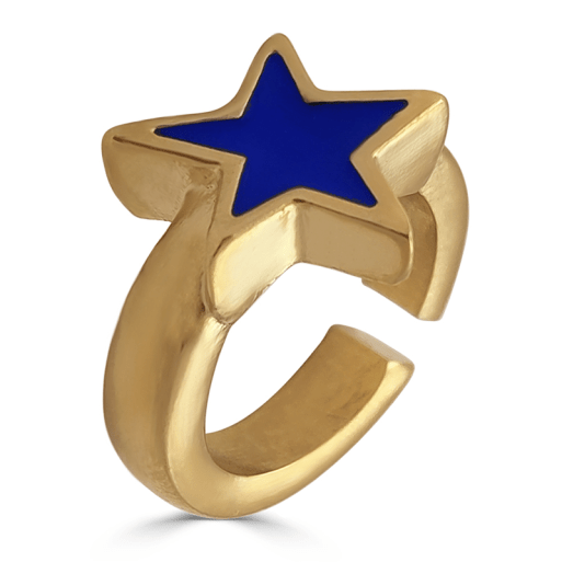 Anillo realizado en zamak, con esmalte negro, azul, pùrpura.