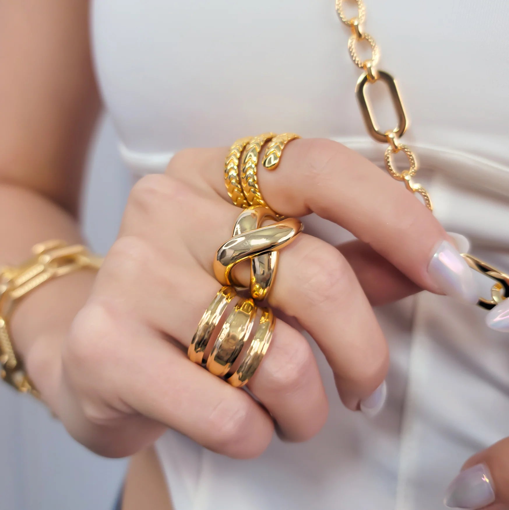 Destaca con las sortijas Maryanni, elaboradas con baño triple en oro 18K y detalles llenos de estilo.
