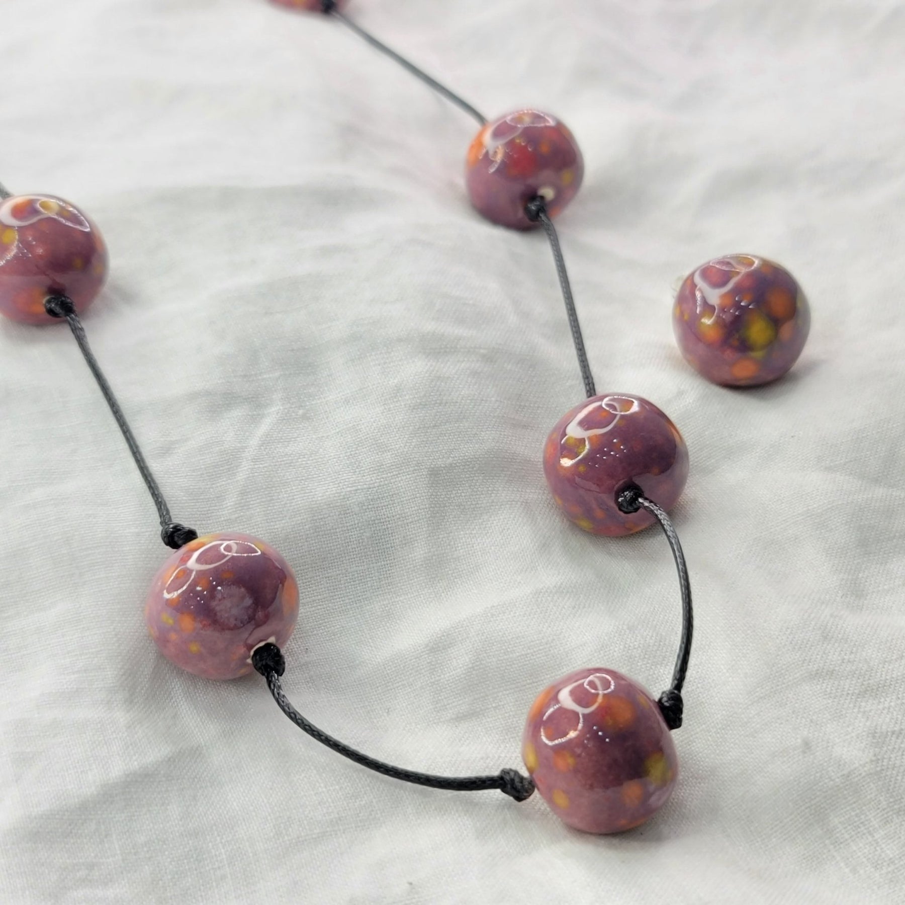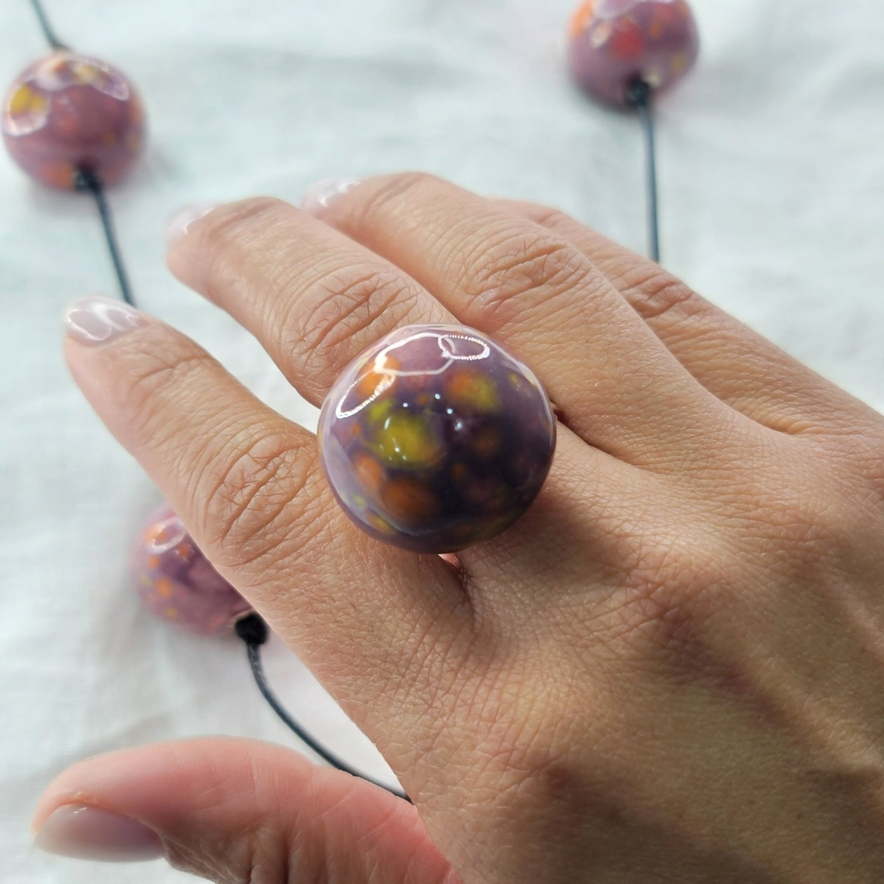Collar y sortija artesanal en barro esmaltado con tonos suaves y textura natural. Hechas a mano en Puerto Rico, cada pieza es única.
