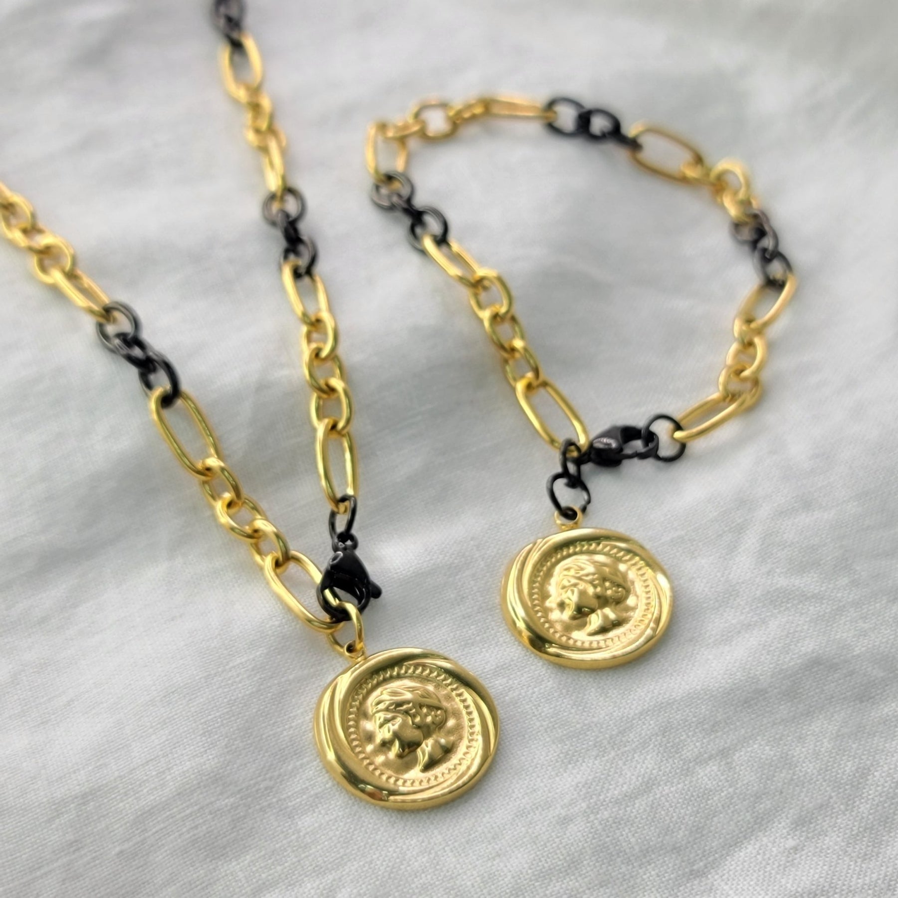 Set Modena cadena mide 22” lo puedes ajustar al gusto , pulsera mide hasta 8”