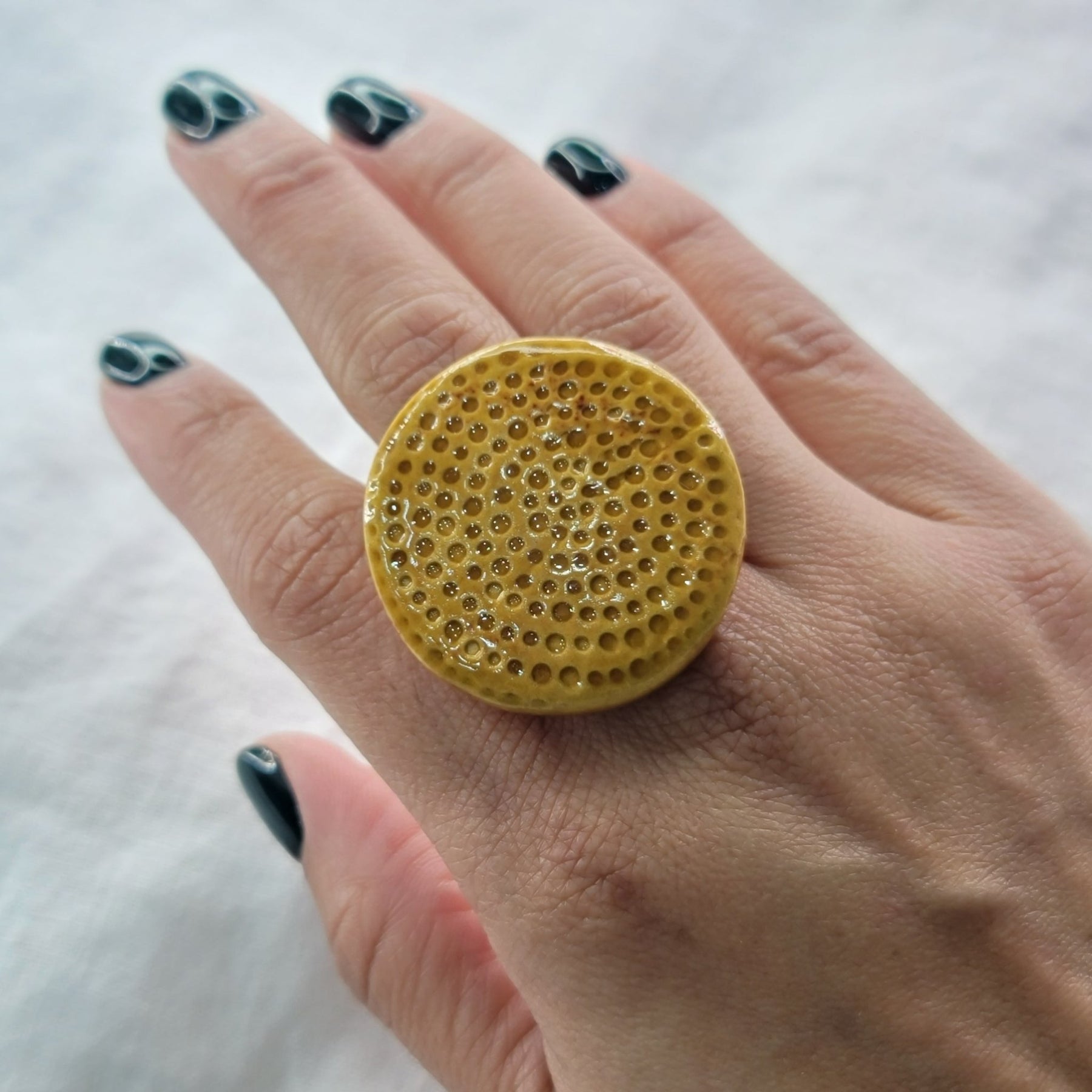 One size , Pieza artesanal en barro, hecha a mano en Puerto Rico. Su tono mostaza y textura única reflejan la calidez del sol y la autenticidad del arte local.