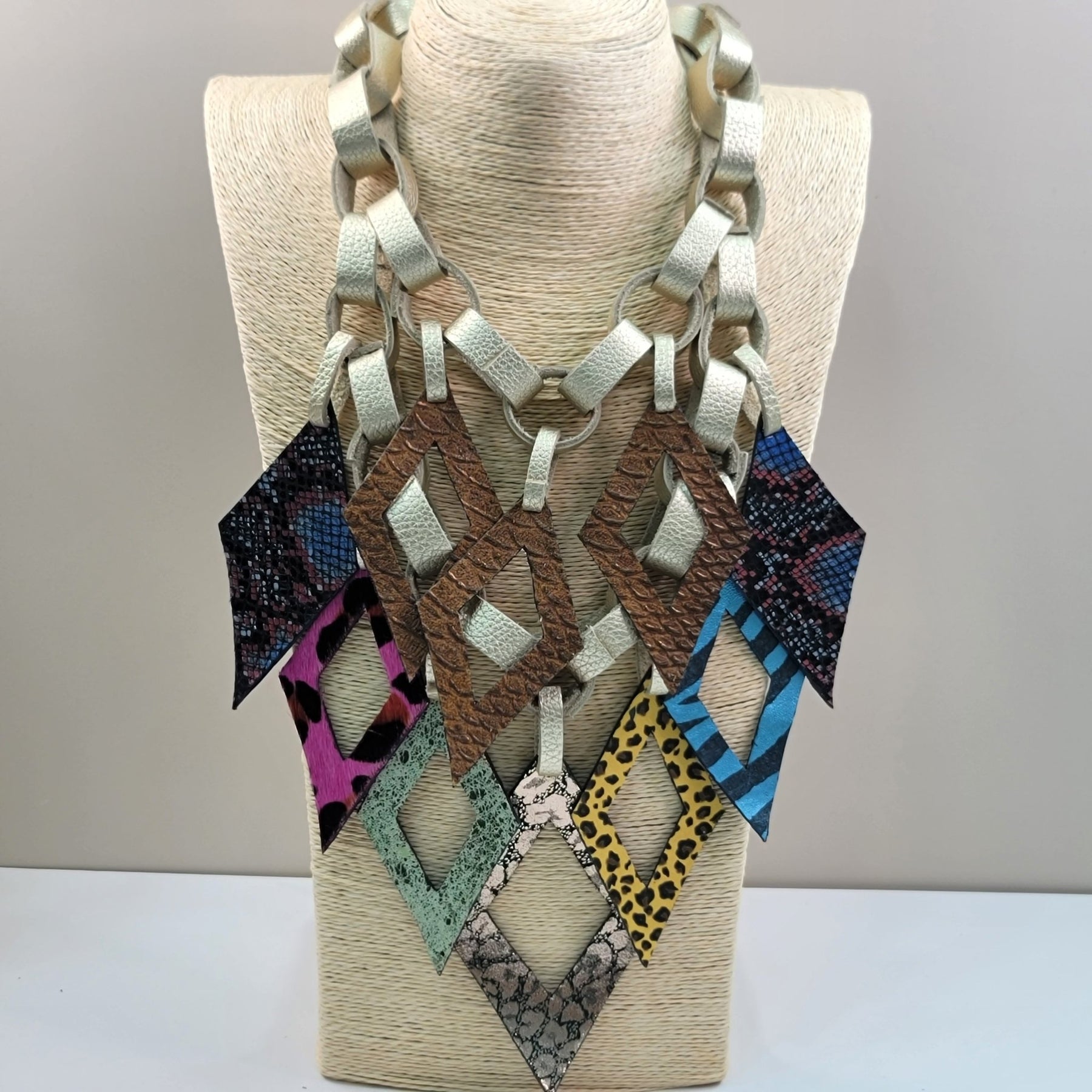 Sus formas contemporáneas y detalles artesanales convierten este collar en una declaración de estilo única, perfecta para destacar con confianza y originalidad.